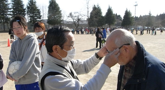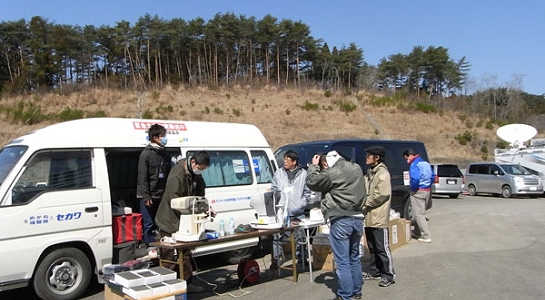 神奈川県眼鏡協会加盟店有志が2011年4月4日から6日に仙台を経由して宮城県石巻市・南三陸町・女川町・東松島市へ向かい、合計で2,000枚強の近視用メガネをお渡しいたしました。